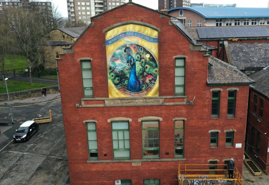World-renowned street artist Cbloxx has revealed a new mural in Leeds city centre. Titled The Peacock, it has been specially made to celebrate Marching Out Together, the community paving the way for an inclusive LGBT+ space at Leeds United Football Club.