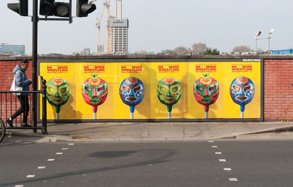 BBH and Chupa Chups mark the end of a decades-long wrapper struggle with real Lucha Libre masks, a legendary Mexican craftsman, and outdoor ads that look like they were torn straight from a Mexico City wrestling venue.