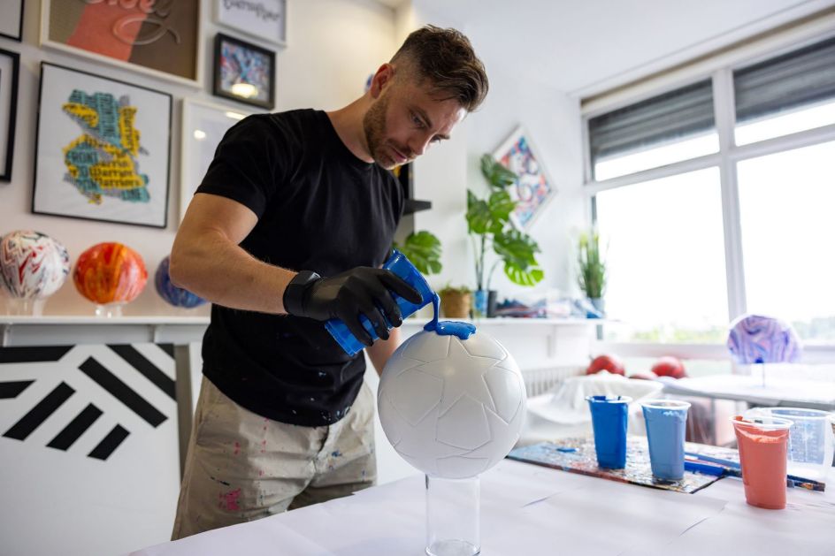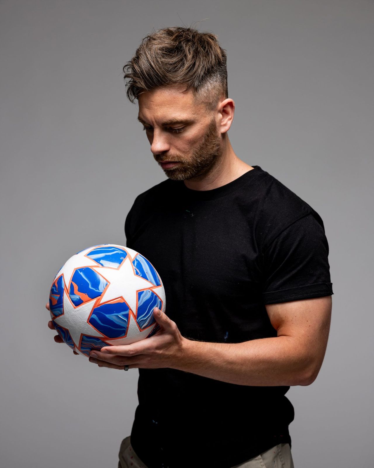 Scottish artist Craig Black has unveiled his tribute to the Champions League in the shape of a bespoke artwork that sees a football adorned with his signature Acrylic Fusion paint pouring technique.