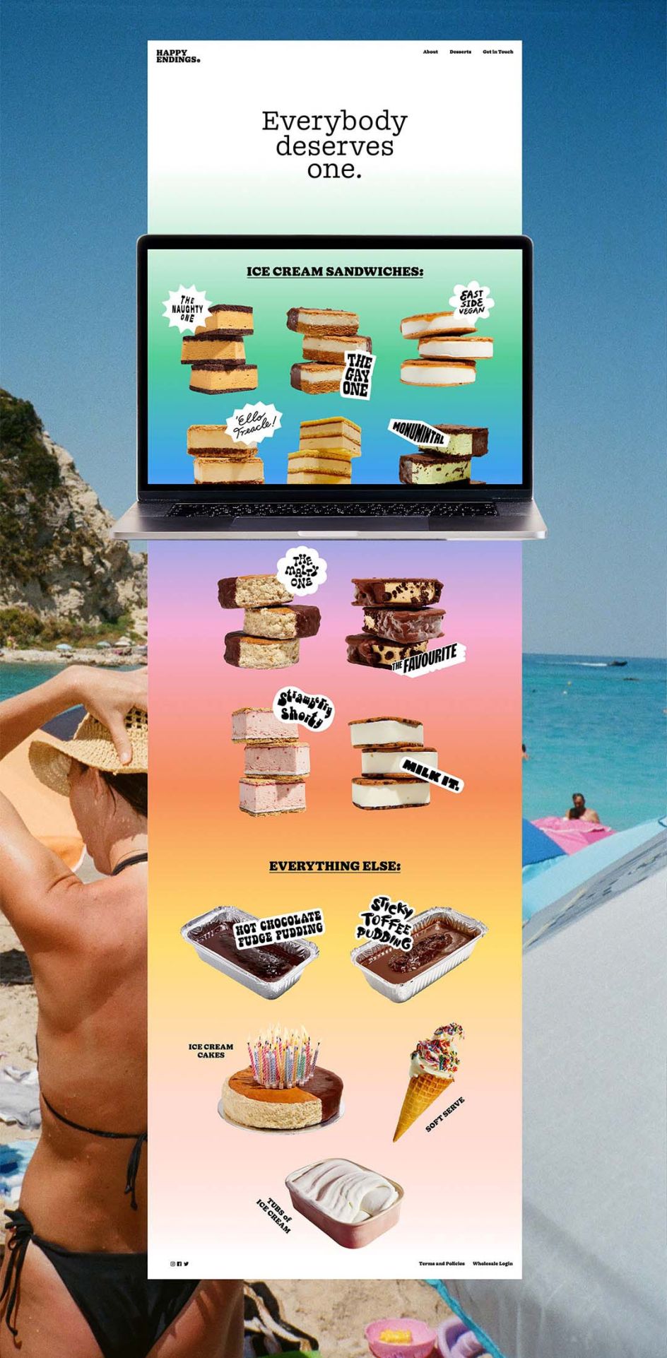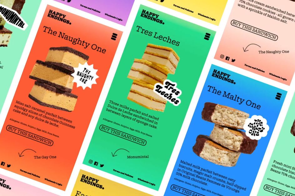 Founded in 2014 by award-winning Australian pastry chef Terri Mercieca, Happy Endings is an ice cream brand defined by colourful chaos. In its own words, it offers consumers "superbly made, scientific beyond belief, high-quality ice cream and dessert [that will] hit you in the face harder than the glowing yellow lights of Blockbuster Video on a Friday night".