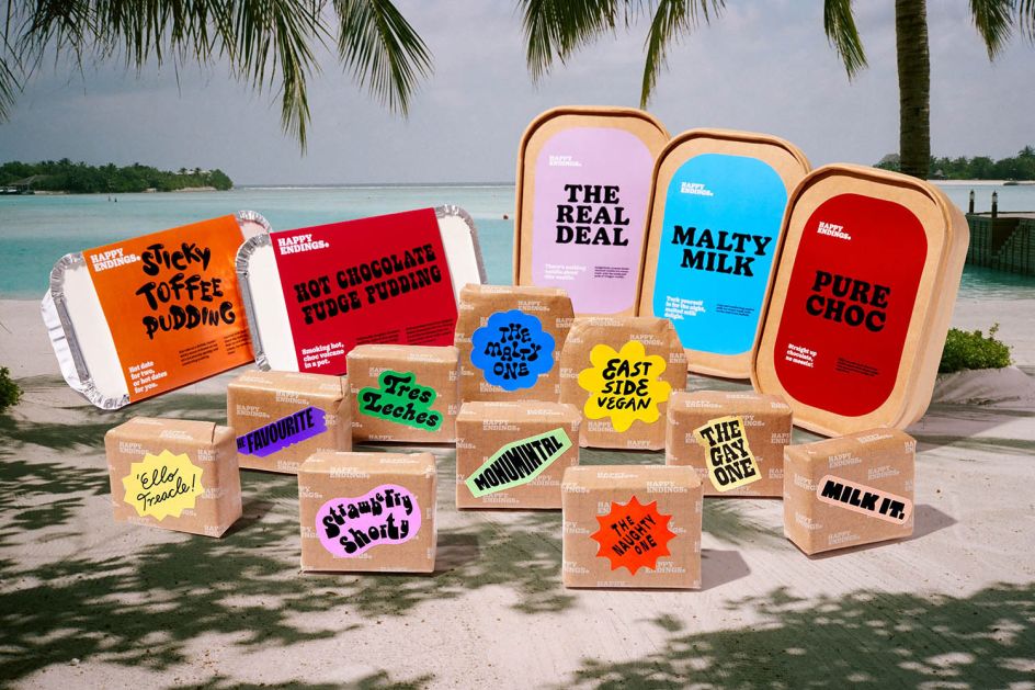 Fast forward to 2023, and Land of Plenty was asked to reinvigorate Happy Endings by evolving the brand and developing a sustainable packaging solution that also increased the efficiency of the day-to-day roll-out of the product.