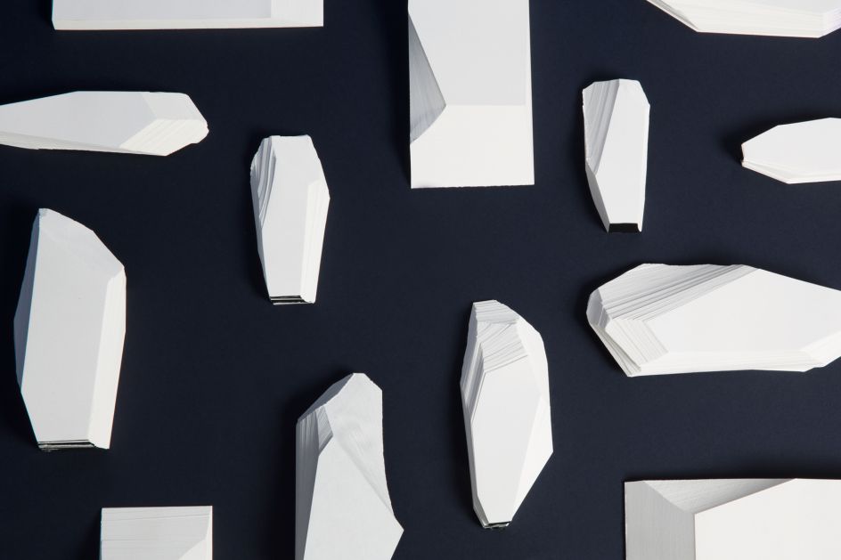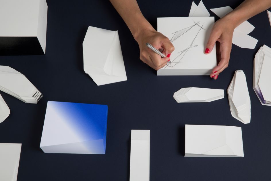Experimentation, bouncing ideas and lots of personal craftsmanship were essential elements of this meeting of minds, which saw various types of paper layered, folded, mixed in their colours, piled up and, thanks to the creative use of a cutting machine, continually re-shaped and formed.