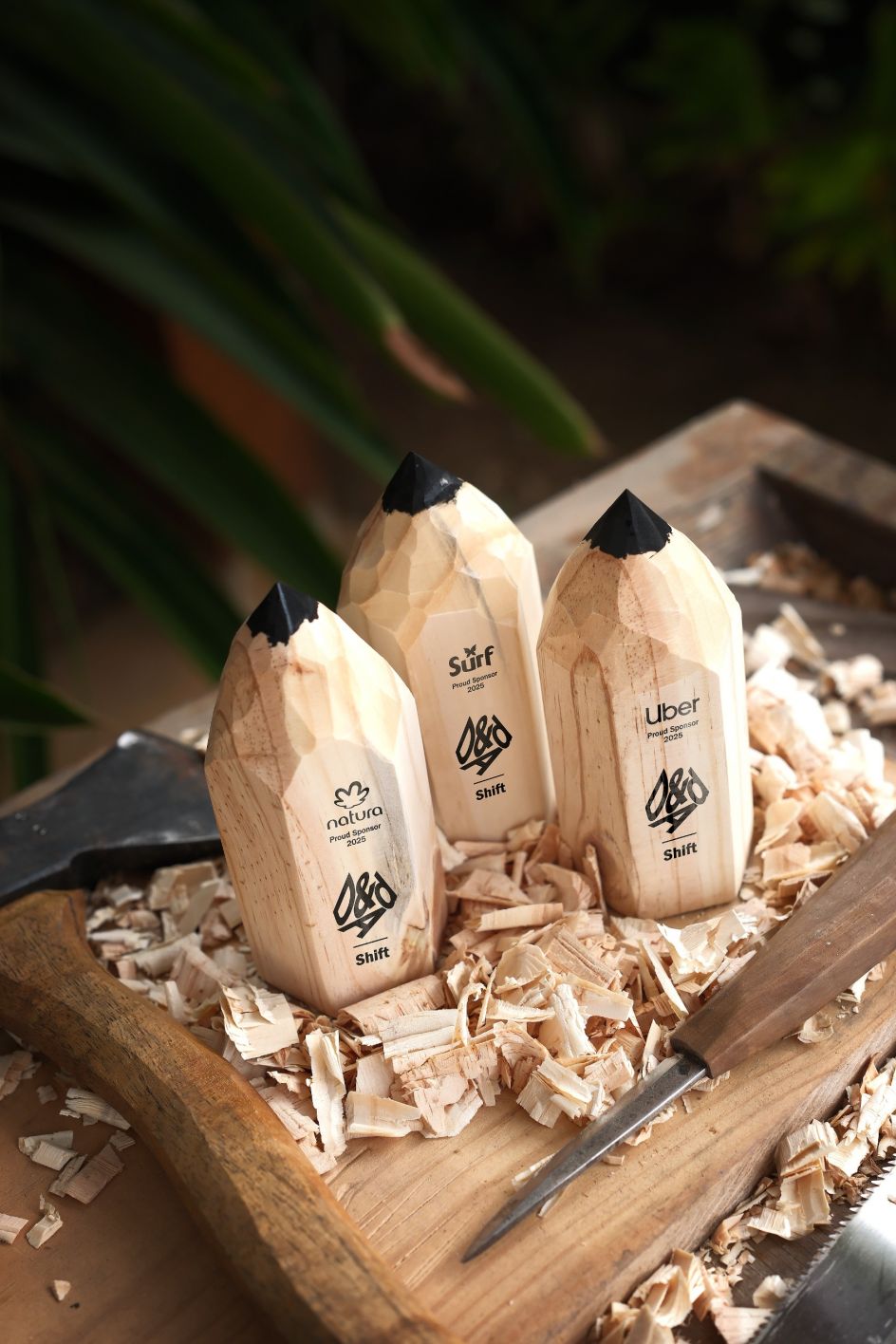 The Pencil is intentionally rougher than the polished versions awarded each year at the D&AD Awards. Its uneven edges and hand-sharpened form are intentional, designed to mirror the unconventional paths many Shift participants have taken into the industry. No two are exactly alike, and each was carved with a machete and finished with a knife, embracing individuality and imperfection as core design features.
