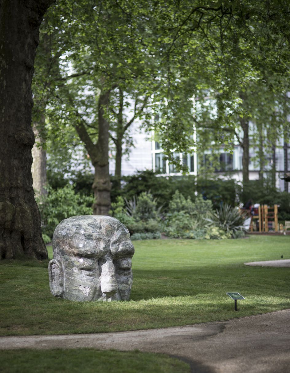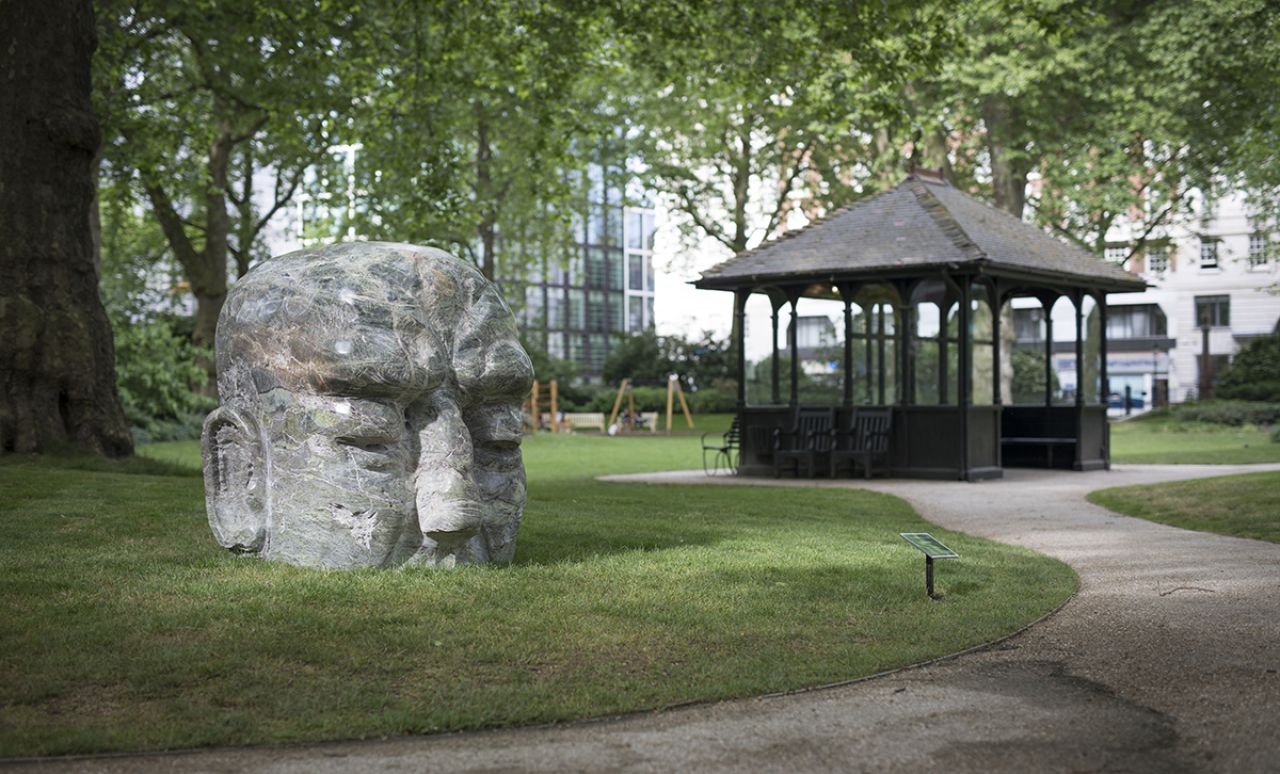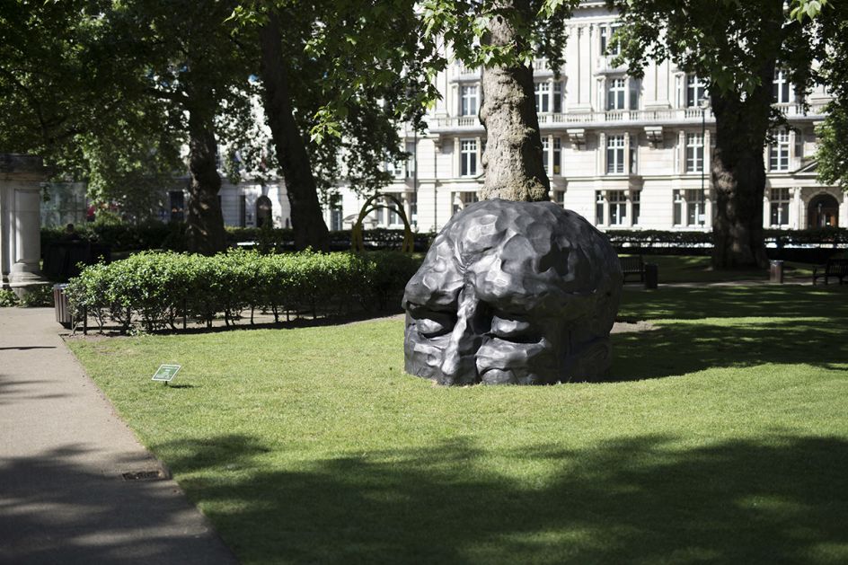 Giant heads break through the ground at Cavendish Square and Portman Square. An evolutionary four-part installation emerges in Portman Square. The brutalist architecture of the Economist Plaza is enlivened by a sculpture titled Alien and figures of Brothers with joined heads, connected by umbilical chords. Against the backdrop of the Saint Pancras Church on the Euston Road further larger Alien and Brothers images reinterpret the iconic building famed for its Greek statuary.