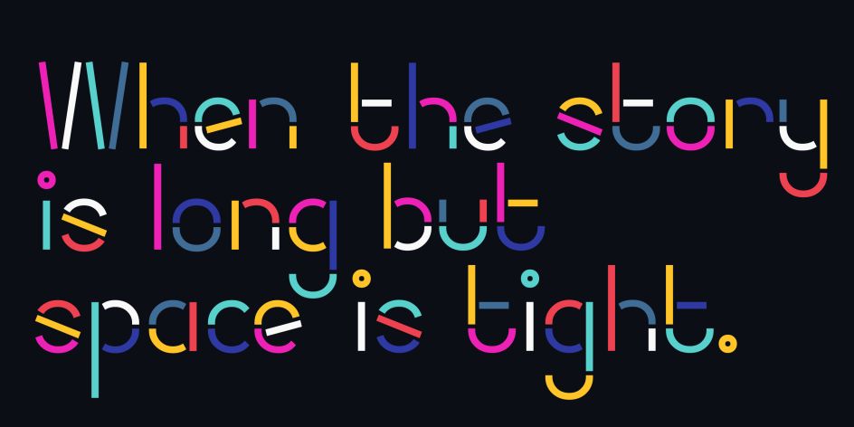 Snare is a "jazzy little display type" that presents like a stencil but behaves in its own way. Featuring angled section breaks and variable heights, it keeps each character's footprint steady as its heights change, revealing unique crossbars, periscoping capitals and deep-sinking descenders. "Because each character follows its own rules, the more each word grows, the more it shows the beautiful rhythm of variety," says Chief Creative Michu Benaim Steiner. Or you can also stretch individual characters to shape the contours of your words.