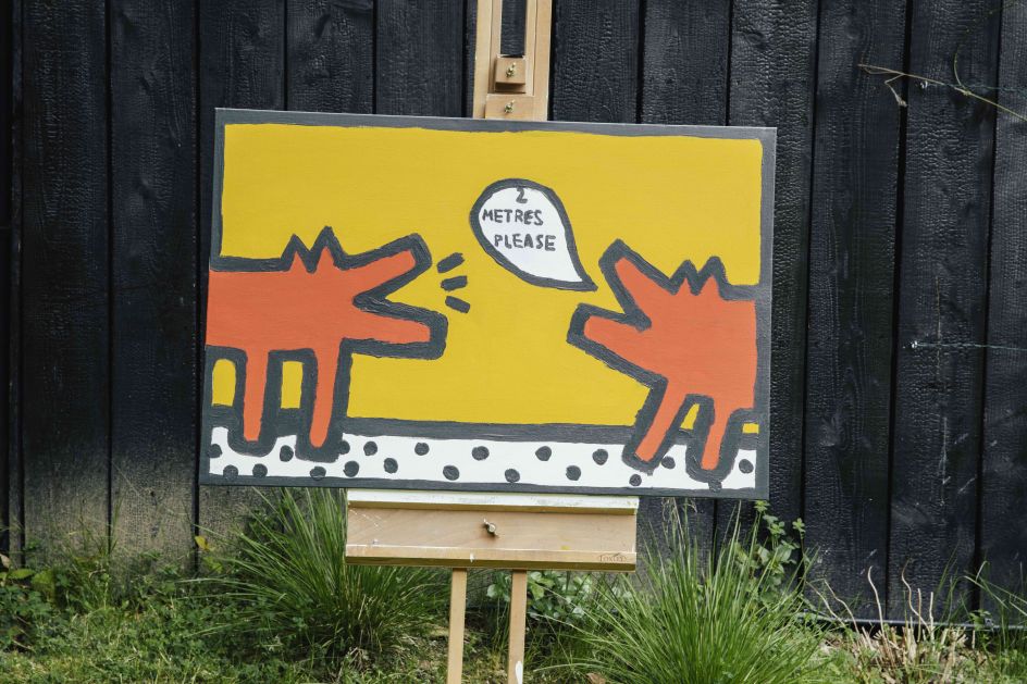 Works include We All Stand Together, a toilet paper collage inspired by Peter Blake and Damien Hirst; Thank You, inspired by Tracey Emin; Two Metres Please, in the style of Keith Haring; Ride It Out And Flatten The Curve – based on Banksy and Bridget Riley; What A Mess, inspired by Jean-Michel Basquiat, and Stop Moaning Lisa, in tribute to Leonardo Da Vinci. There's also Mayhem, of Gerhard Richter fame, and Coronavirus is Pure Evil, inspired by Pure Evil.