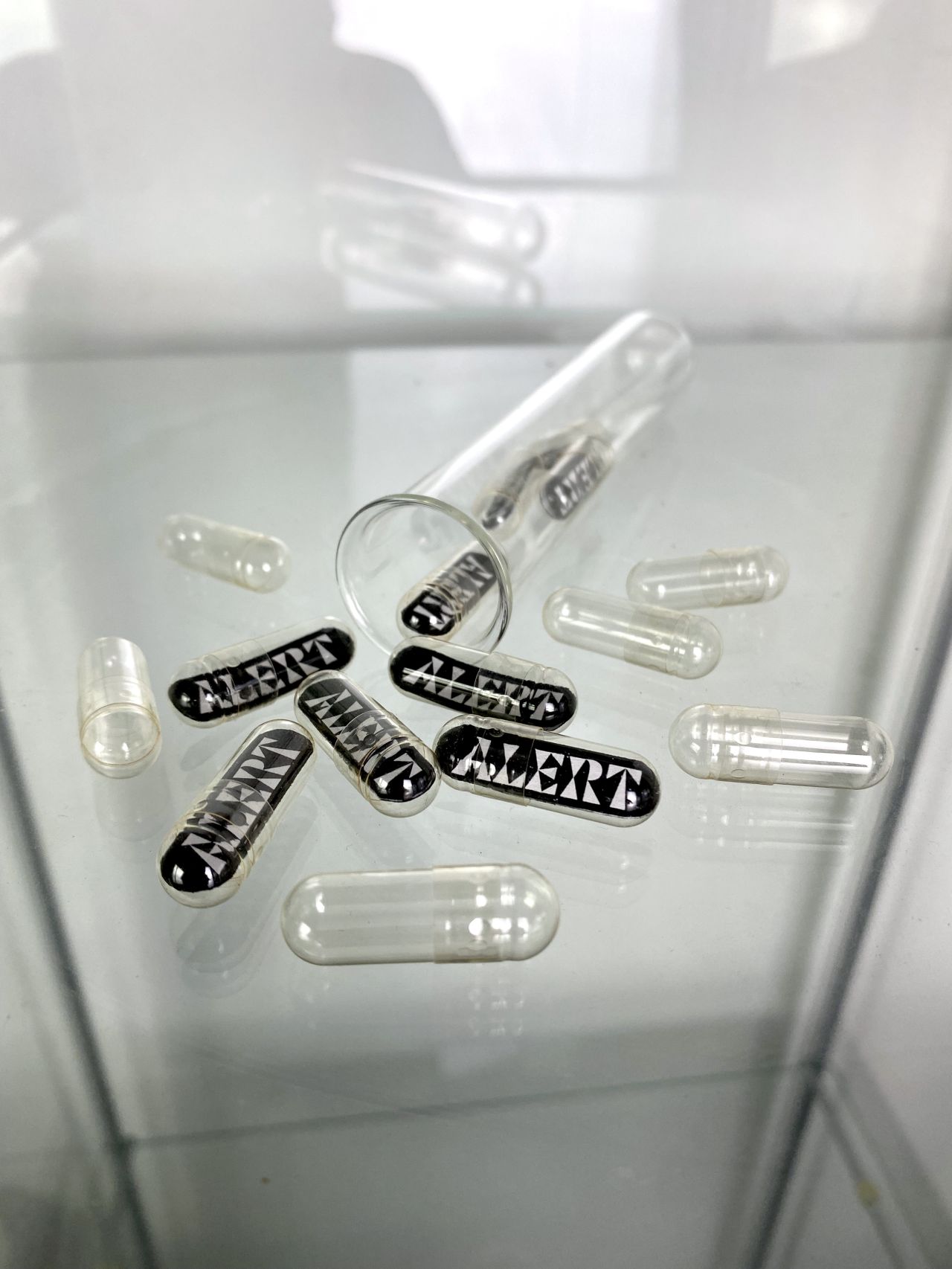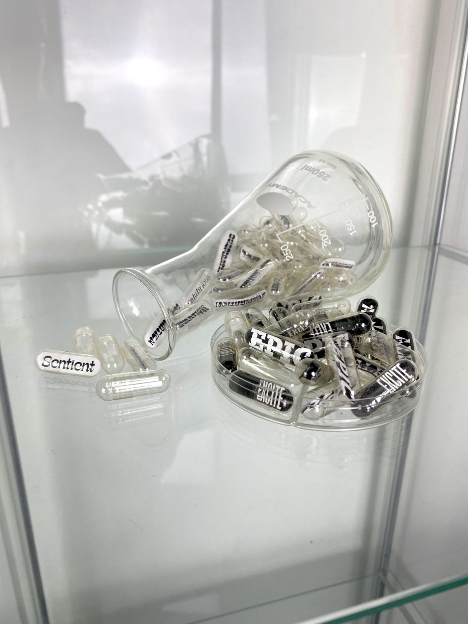 And because this is a project from the founder of Type Tasting, a special typeface has been used to signpost each mood in the zines. The shapes of the letters provide clues to the nature of the soundscapes, and when combined with the language, it provides a foundation for each soundscape. Each typeface is suspended in a pill-like capsule in the physical exhibition.