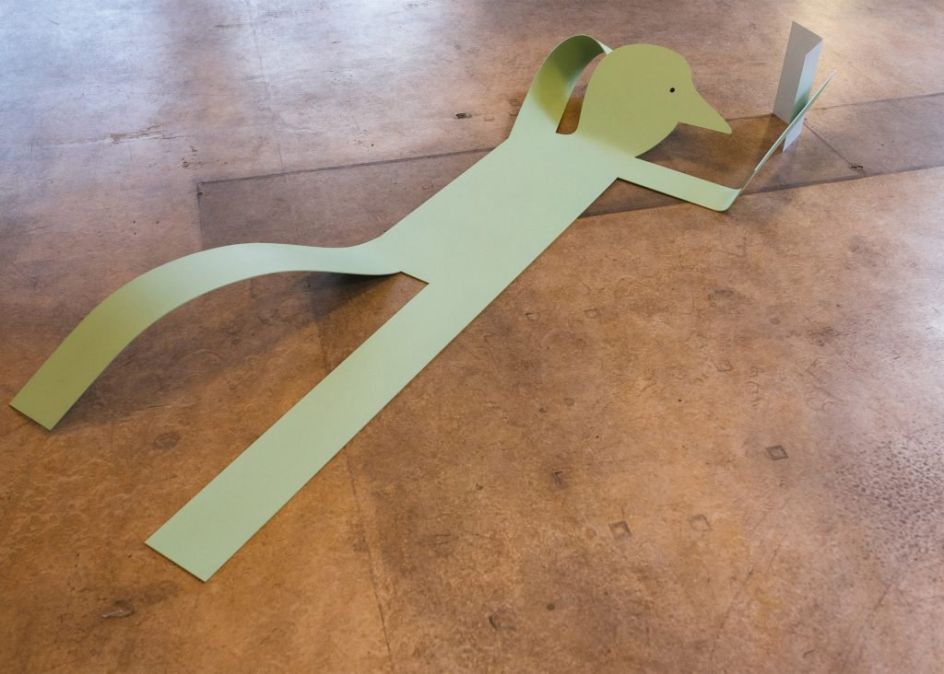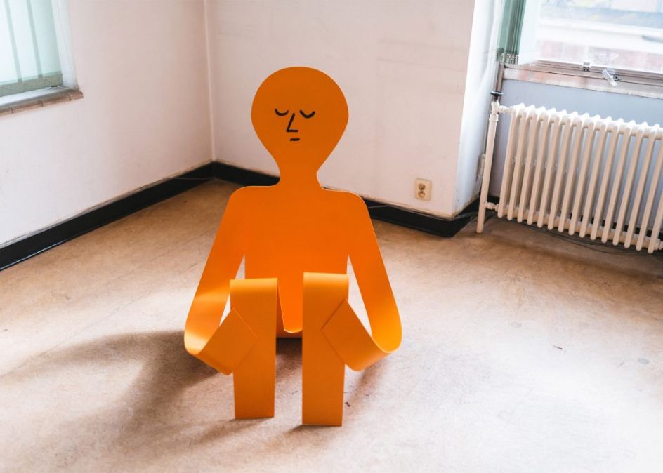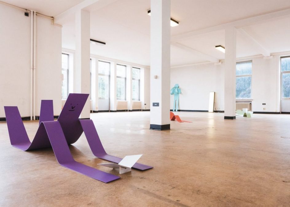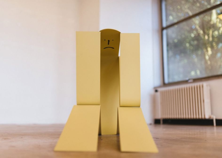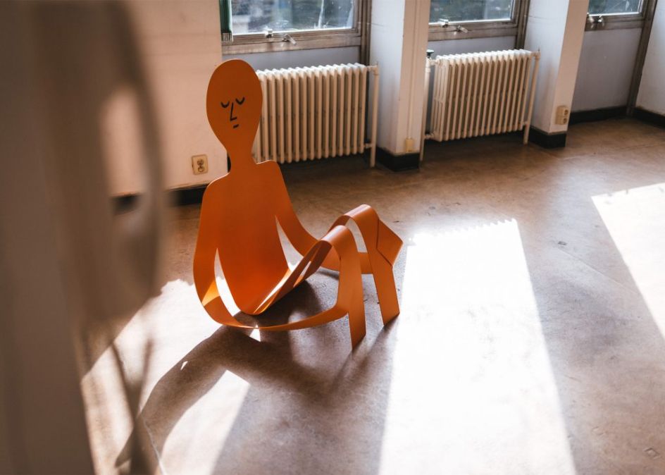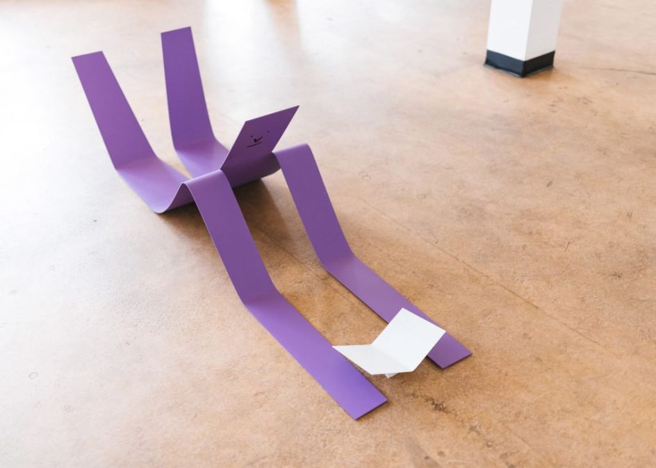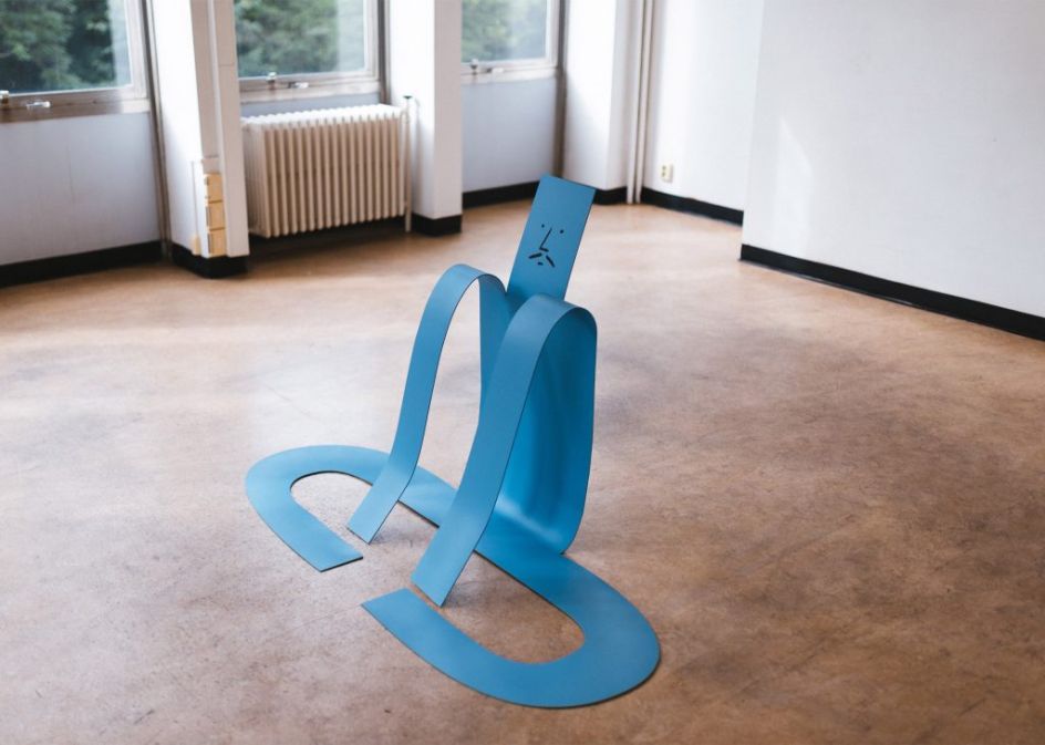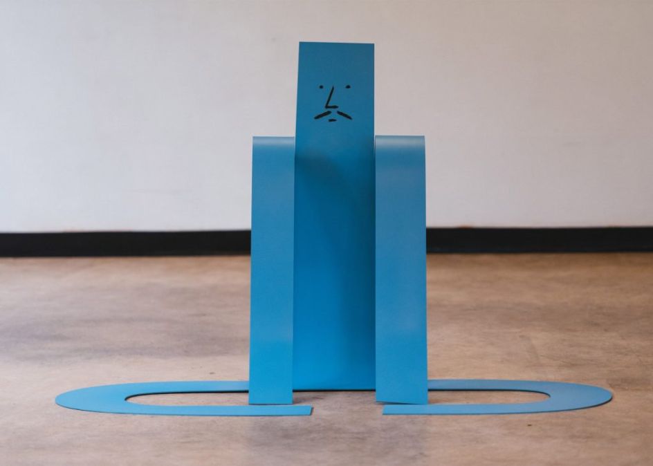 Flat Out is the first large-scale exhibition of sculptures by French illustrator Jean Jullien where he presents a series of eight steel artworks, all in his usual style and along the theme of laziness.