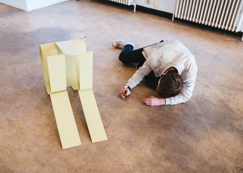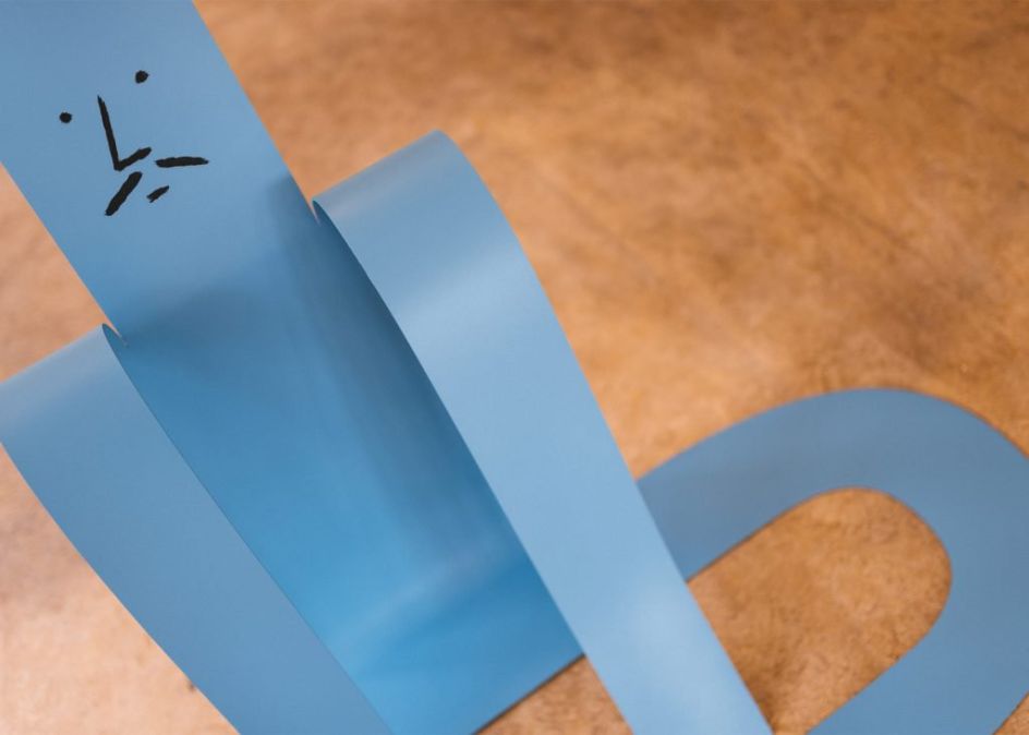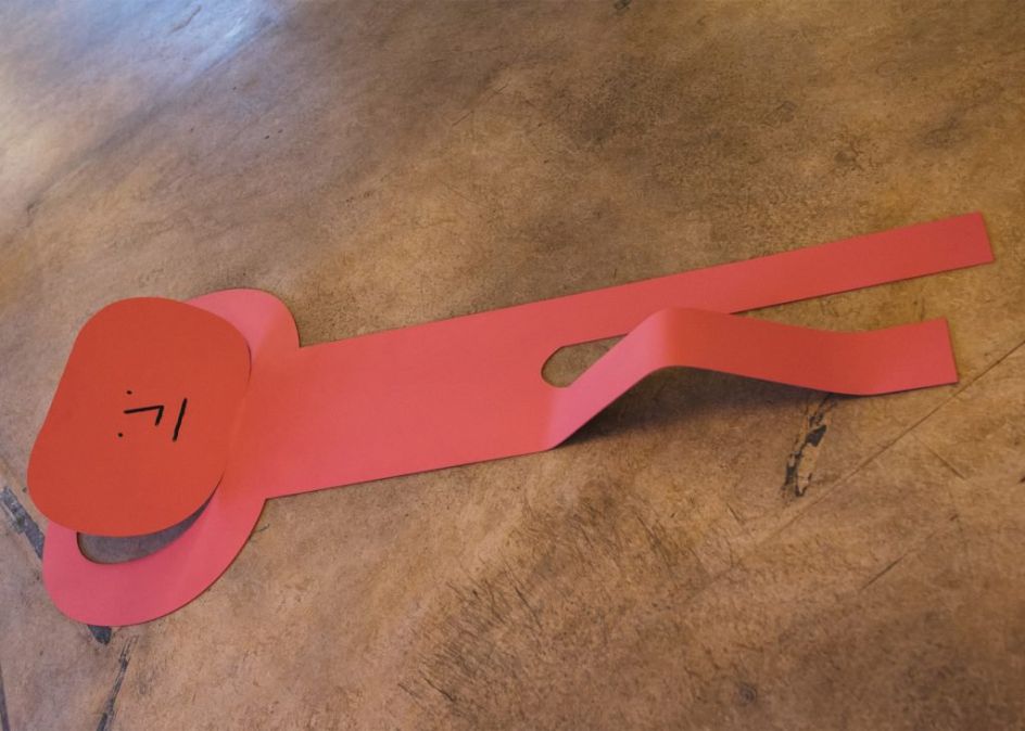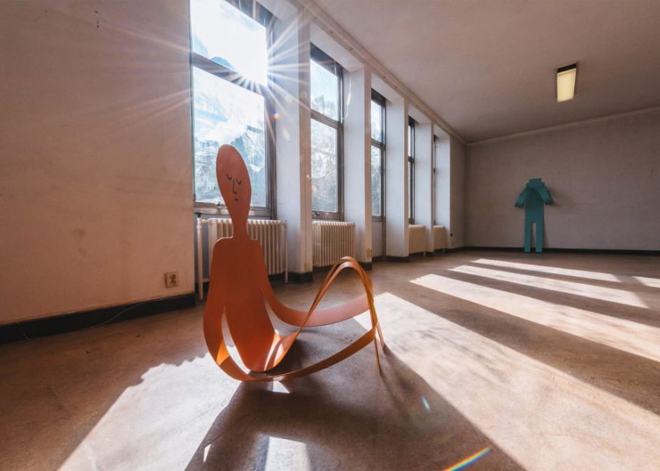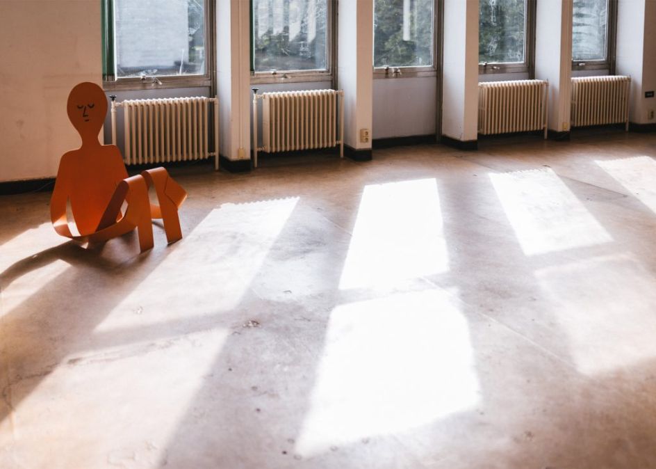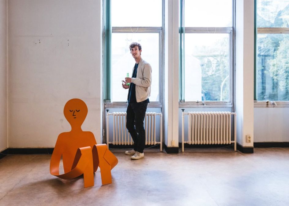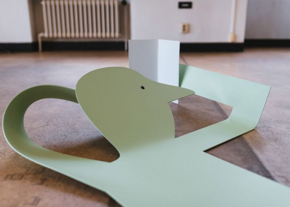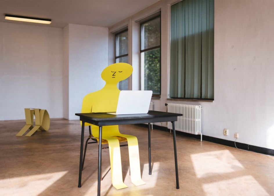 Flat Out is the first large-scale exhibition of sculptures by French illustrator Jean Jullien where he presents a series of eight steel artworks, all in his usual style and along the theme of laziness.