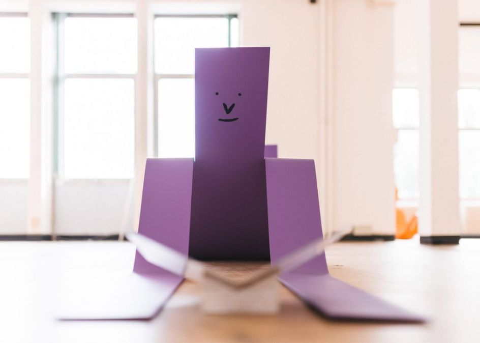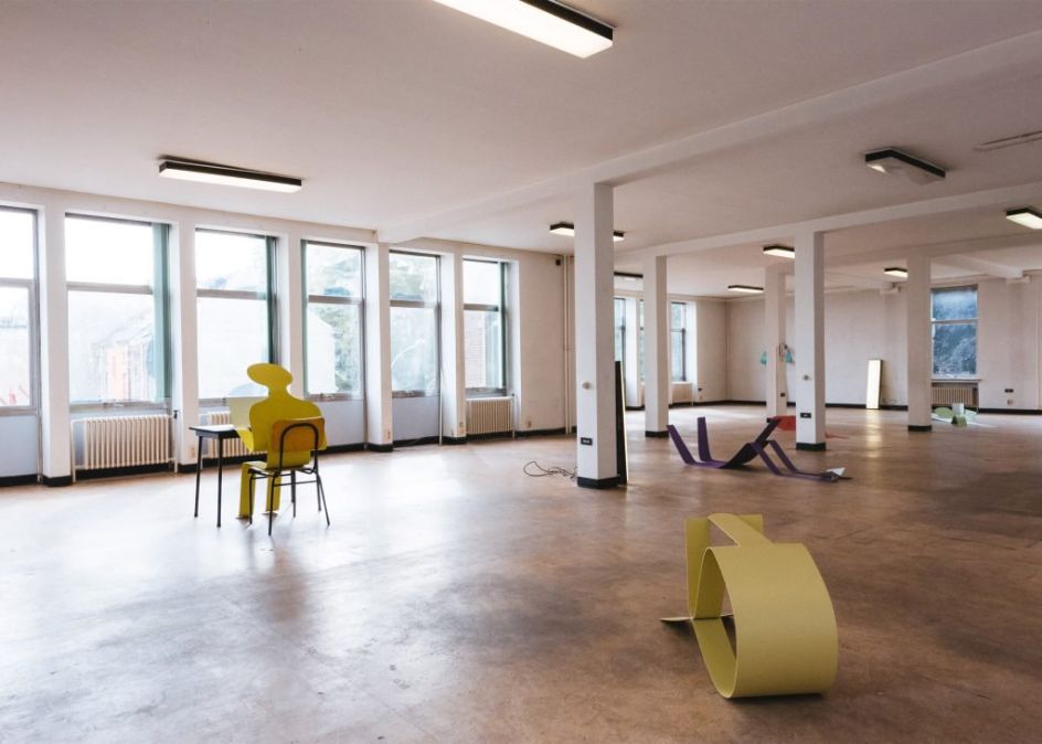 Recently on show at the Watt space at Gent's Dift Gallery, the bright coloured structures are made from sheets of bent metal with each piece resembling the outline of a person.