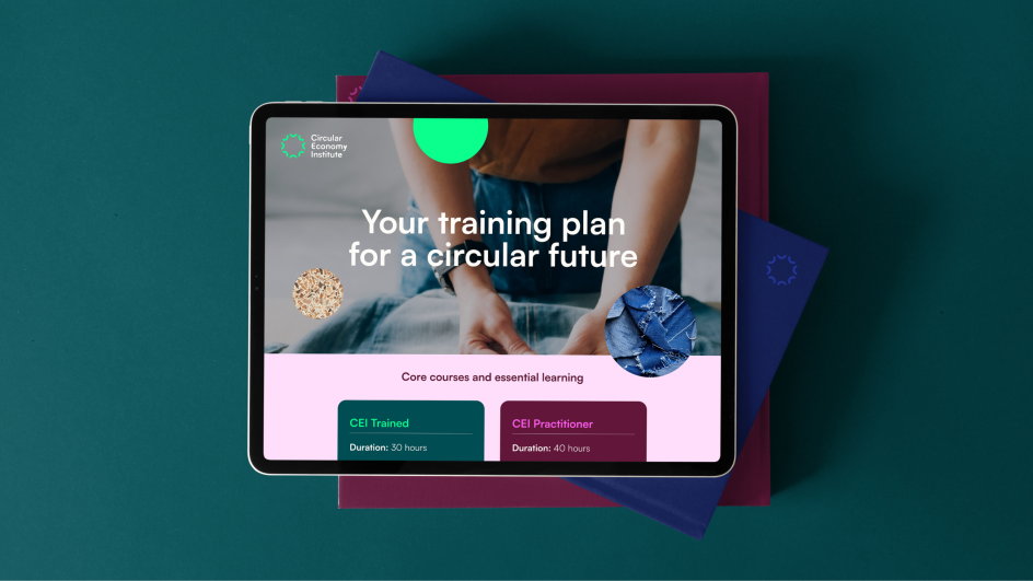 The new brand voice reflects that clarity. Anchored by lines such as 'Powering a circular future' and 'Real people. Real progress', it reinforces the CEI's role as both authoritative and human.