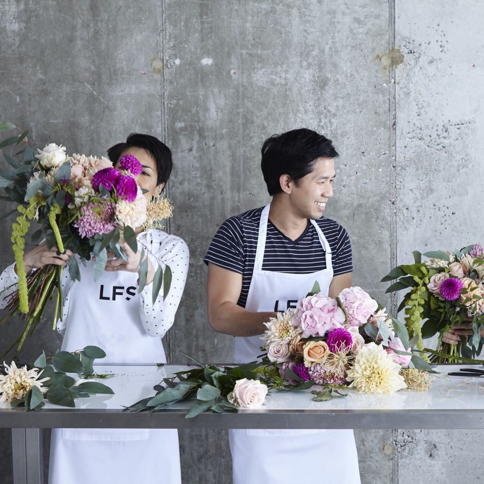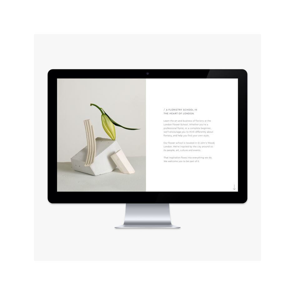 On the website, clean, geometrical backgrounds give delicate floral arrangements room to breathe. The personality all comes from the flowers. Helen Dyson, founder of the school, said: "We did a fantastic photoshoot at the National Theatre, with flowers set against the brutalist buildings. The result is incredibly striking: you really feel the organic beauty of the plants."