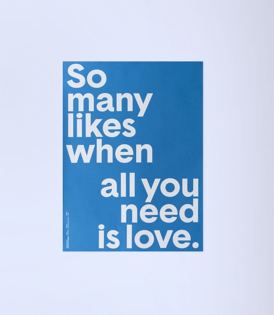 In homage to the icons of hip-hop, London studio Lowrie’s design features Biggie Smalls, Tupac, and Snoop Dogg, while international agency Base Design’s offering features a wry take on the ubiquity of social media, declaring ‘So Many Likes - When all you Need is Love’.