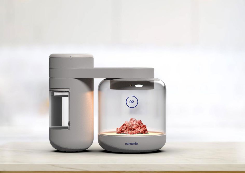 This conceptual, speculative project by Alice Turner is designed to help us visualise what a post-meat society might look like and whether it's a future we'd buy into. 'Carnerie' is an app-controlled device that lets you order cell capsules from local farms to grow different types of meat.