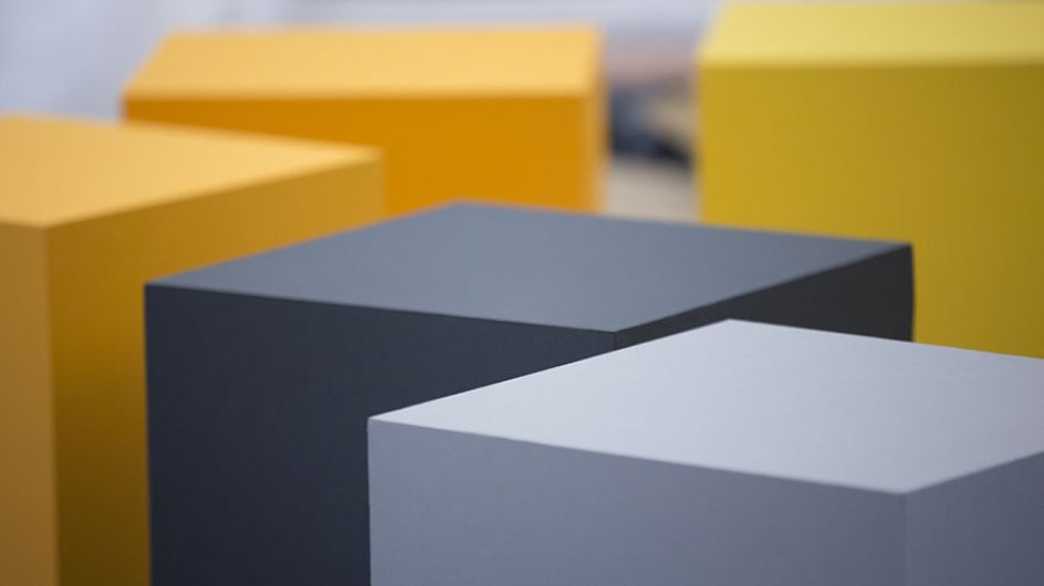 "A simple colour scheme of blues, greys and accents of vibrant oranges and yellows really brought the space to life while giant versions of the cubes on the central plinth reinforced the materials used and highlighted the amount of work that had gone into each piece. The result; a beautiful and bold celebration of the many hands of northern industry, past present and future."
