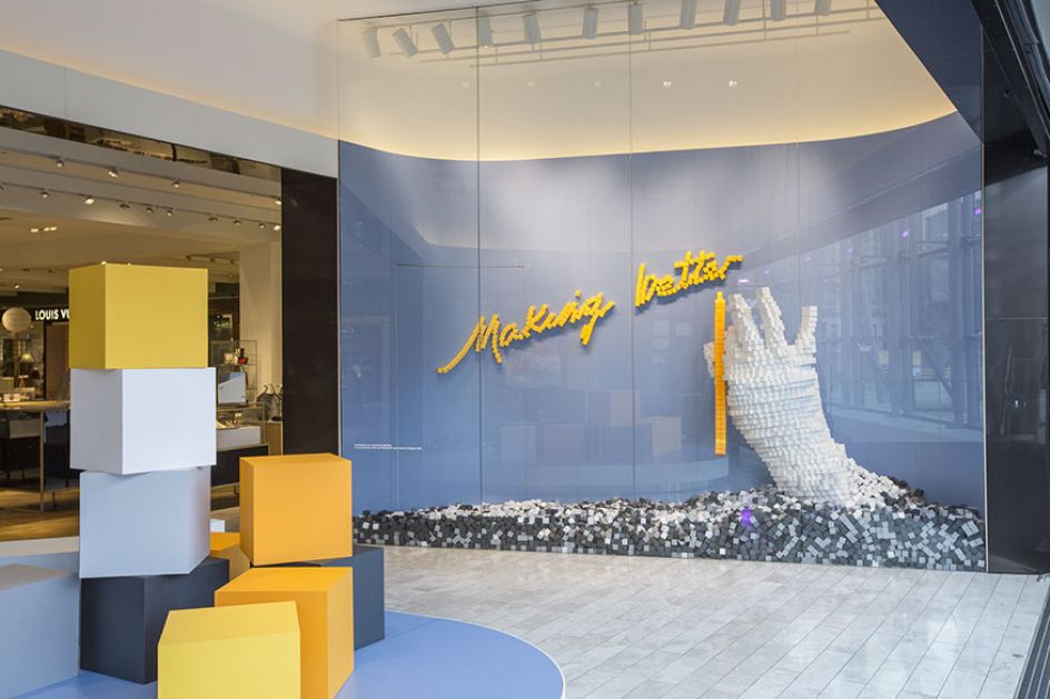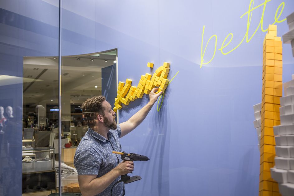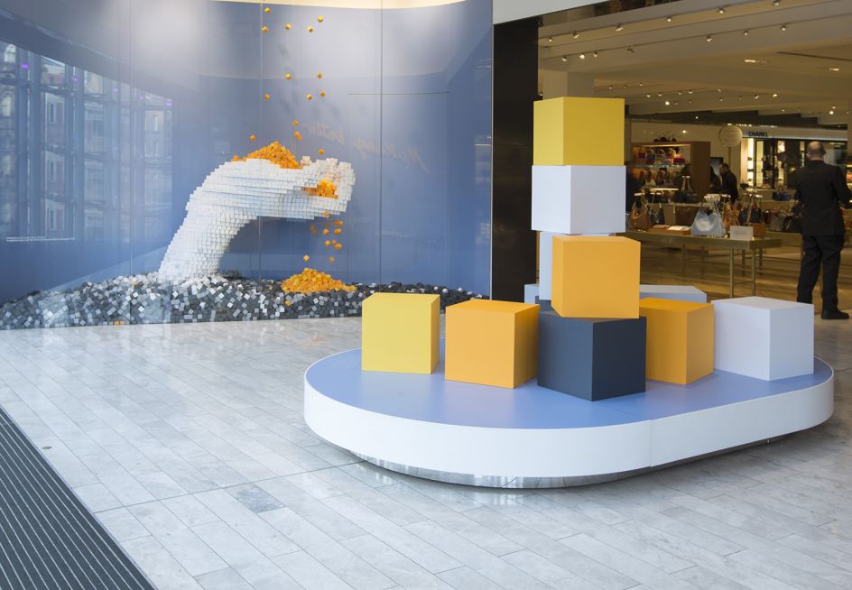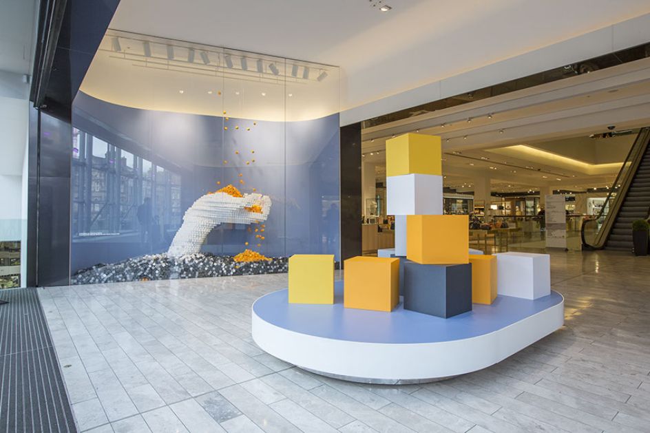 The creative studio, founded by designer and artist Sam Robins, was commissioned by Selfridges to create the large-scale installation for its Manchester Exchange Square store as part of its Bright New Things sustainability initiative.