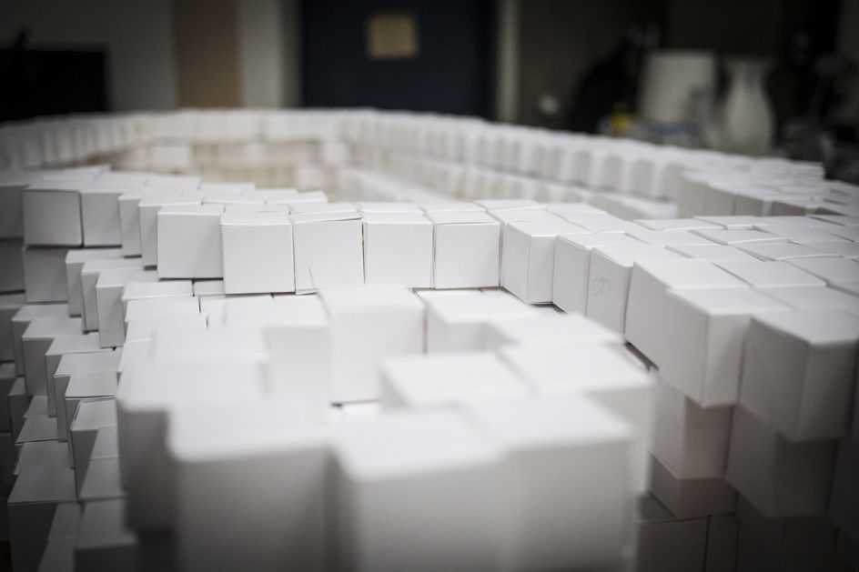 Speaking of the project, Sam said: "We wanted to focus on the human touch, the idea of returning to artisan skills and making things that last. From this we came up with the concept of the human hand, crafted entirely from thousands of tiny handmade paper cubes, using high quality James Cropper paper.