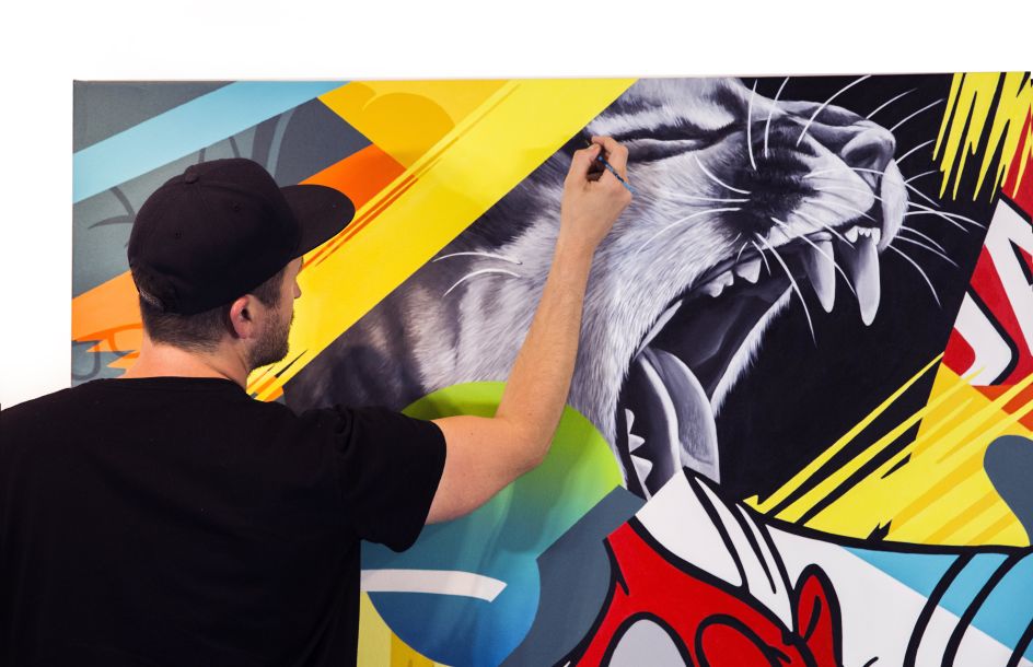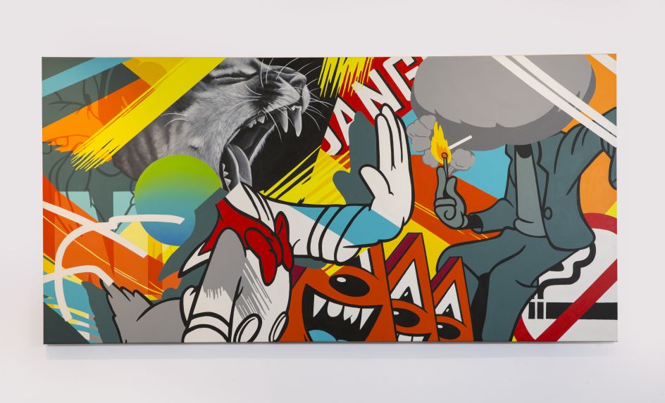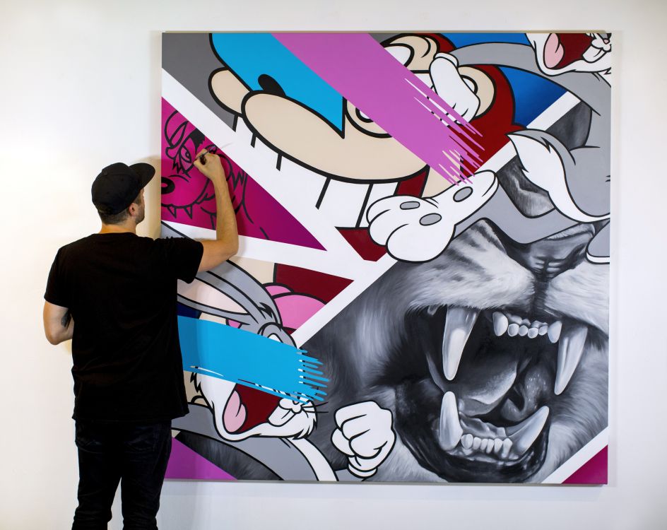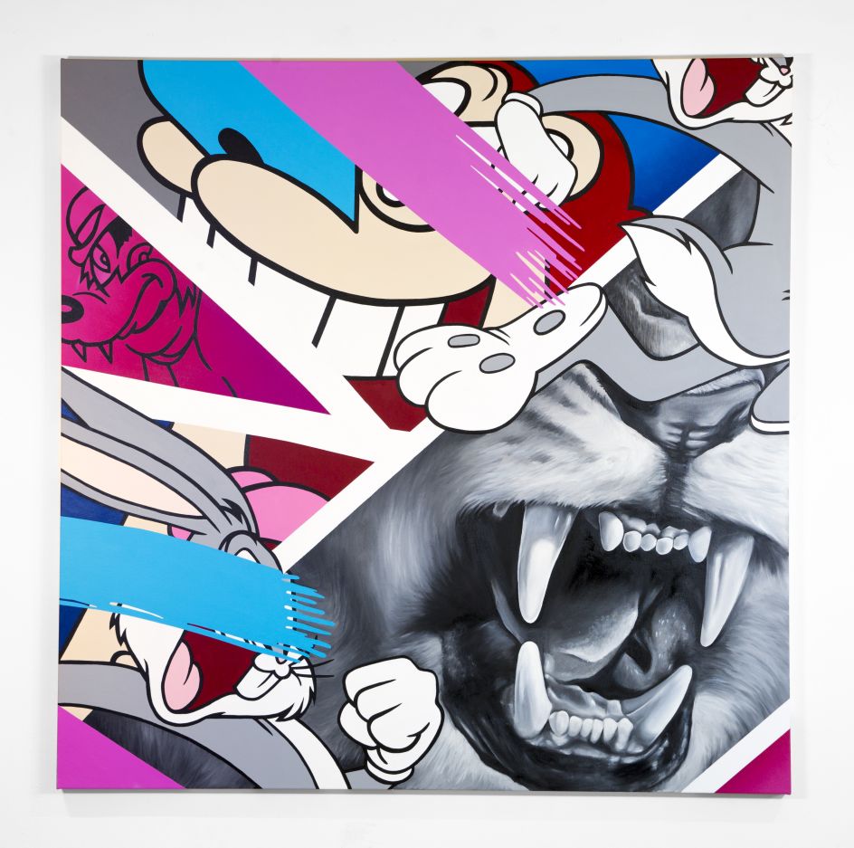 Inside Voices is a true mash-up of styles and mediums that nods at urban contemporary artist Greg Mike’s love for classic cartoons, vibrant colours and ferocious animals. The new show features 25 large works on canvas, using the artist's distinctively bright and bombastic yet polished style, incorporating photorealistic animals as well as his now-iconic character, Larry Loudmouf.