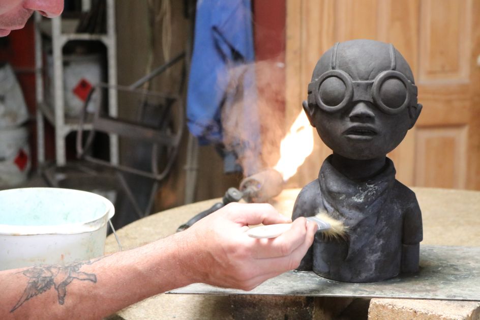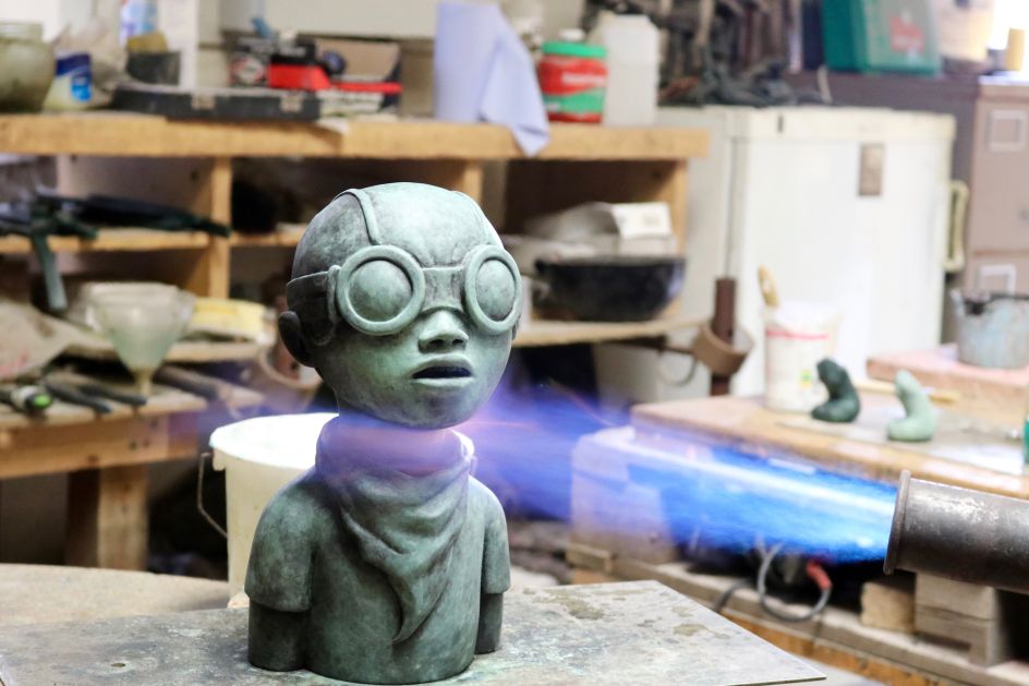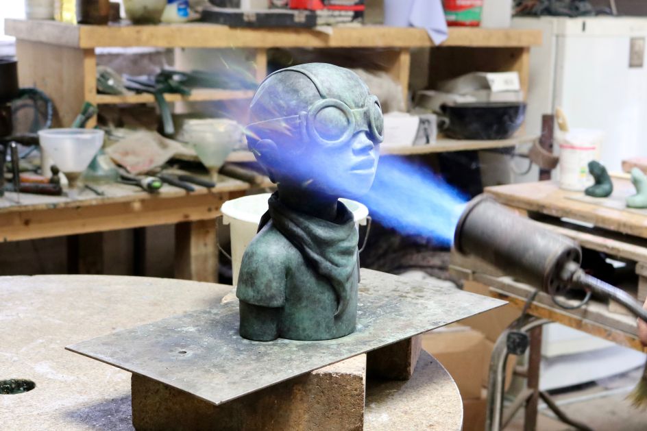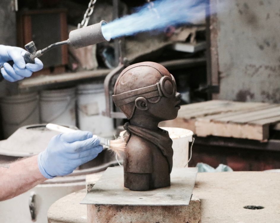 The limited edition artworks, which are beautifully finished in classic bronze, gold and green patina, are based on Brantley's iconic Flyboy character and have never been made in bronze before. The pieces were initially sculpted by Brantley and Fluorescent Smogg, then cast by one of the world’s leading fine art specialists using 3,000-year-old methods perfected by Renaissance artists such as Donatello and Lorenzo Ghiberti.