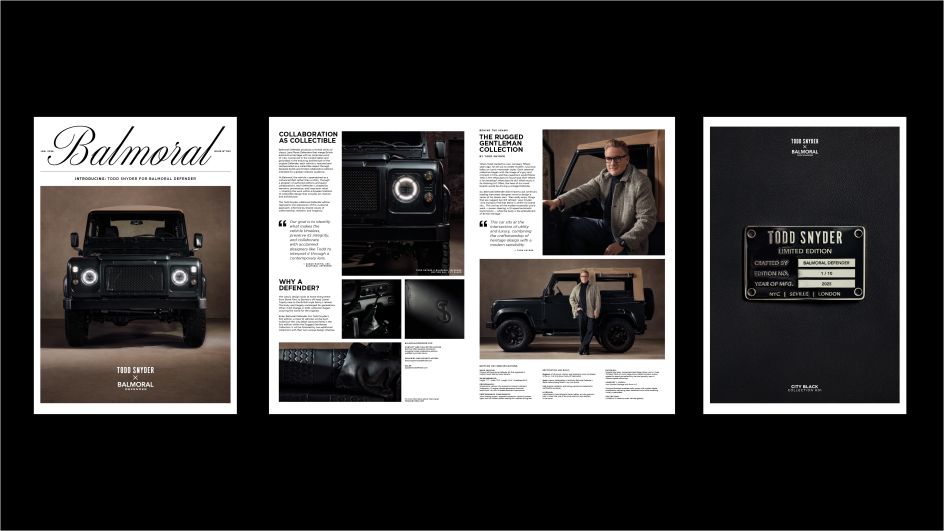 For the first in a series of designer collaborations, Balmoral Defender tapped the Brooklyn agency to create something that feels more fashion editorial than car commercial... complete with a dual-logo system, edition numbering and a film shot across Brooklyn and Tribeca.