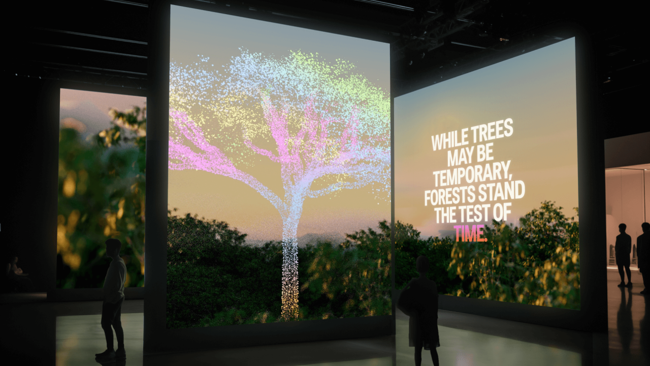 They spun these LiDAR colours into a rainbow palette, referencing the natural iridescence found in beetles, birds, shells and leaves. This showcases the symbiosis between natural wonders and Pachama's impressive technology.
