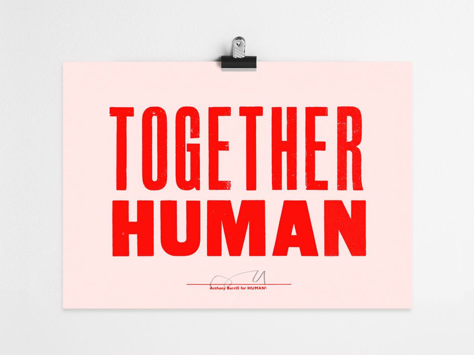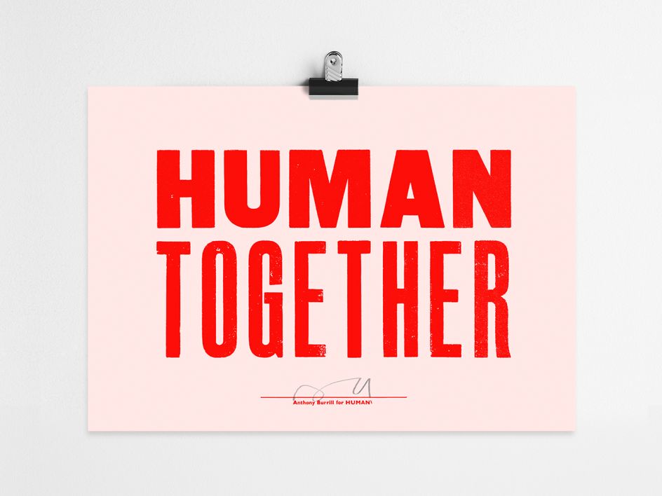 Graphic artist, print-maker and designer Anthony Burrill has collaborated with Rosie GarcÍa, founder of HUMAN \, to create a powerful message for mental health awareness.