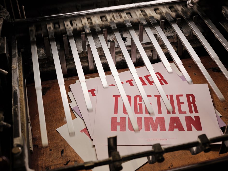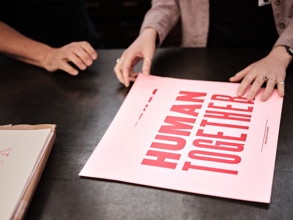 "I’ve always liked Anthony’s distinctive style," says Rosie. "What’s so obvious about his work is that he loves the process of creating something meaningful. Reiterating and reworking it until he lands on something striking, that has a positive or moving sentiment. Working with him on this print was a total joy and I can only hope it brings more significant attention to MHA and to the precious thing that we all share, our humanity."