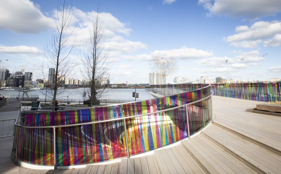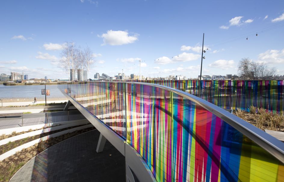 She brought us the dazzling installation at Paddington Central's Westway Bridge and a stunning rainbow chandelier at The Met. Now the British artist Liz West is launching a colourful new piece at Greenwich Peninsula in London, wrapping an entire glass walkway by the Thames with her rainbow signature style.