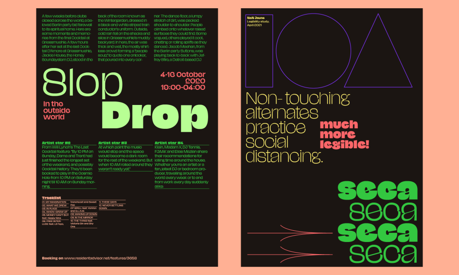 Alongside the immediately addictive game, NaN Jaune's site is a host of wonderful and equally engaging interactive elements that showcase the power of the typeface. Asking whether this interactivity sets a precedent for future type releases, Luke explains "they have their obvious benefit, especially around variable font technology," adding, "it's right there, the user can adjust sliders, edit text and get a feel for the offering," with no need to download, install or boot up any additional software. "It's at your fingertips the moment you're engaged with it," Luke explains, concluding, "it's a working prototype for how the typeface performs in a digital environment."