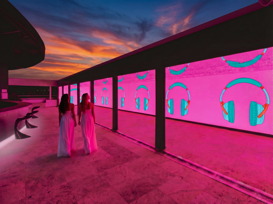 Sir Michael Craig-Martin, whose 70m-long digital work Music runs through Hï Ibiza's open-air gallery, is characteristically direct about why the format appeals to him. "I love the idea of people coming across art in a situation where they wouldn't expect to see it," he enthuses. "For people to come across it in some aspect of ordinary life, like in a club, that seems to me to be a very interesting idea."