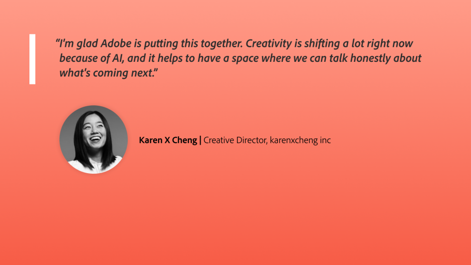 Adobe is bringing visionary creatives together to drive conversations about the true impact of AI, how the creative industry is evolving, and how we navigate what's next together.