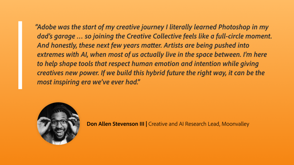 Enter the Adobe Creative Collective, a newly formed group of creative leaders whose day-to-day work puts them squarely at the intersection of creativity and emerging technology. These aren't people with hot takes. They're people with real experience, hard-won insights, and the battle scars to prove it.