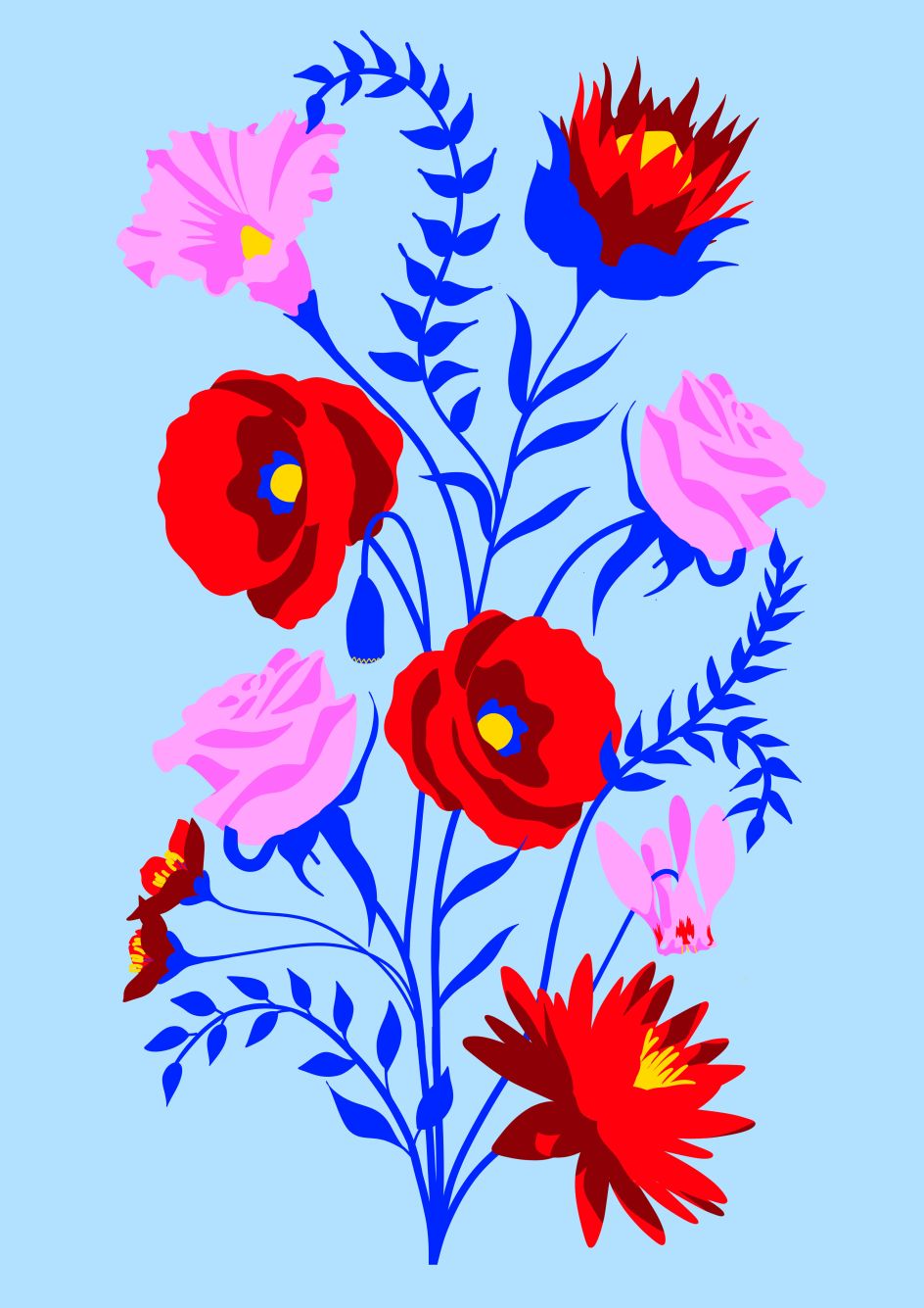 Hanna's mural combines these two seemingly opposing ideas with a bespoke floral wallpaper design. "The wallpaper was inspired by the national flowers of the countries the local community are from, as reported in the census data," says Hanna. "Creating a fantasy bouquet is a celebration of the cultural diversity of Edmonton, which I personally had the privilege of growing up in."