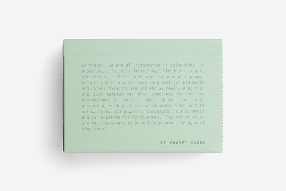 "One fundamental path to remaining kind around people is the power to hold on, even in very challenging situations, to a distinction between what someone does, and what they meant to do." – This is just a snapshot of the wisdom you can expect from the Kindness Prompt Cards, the latest offering from The School of Life.