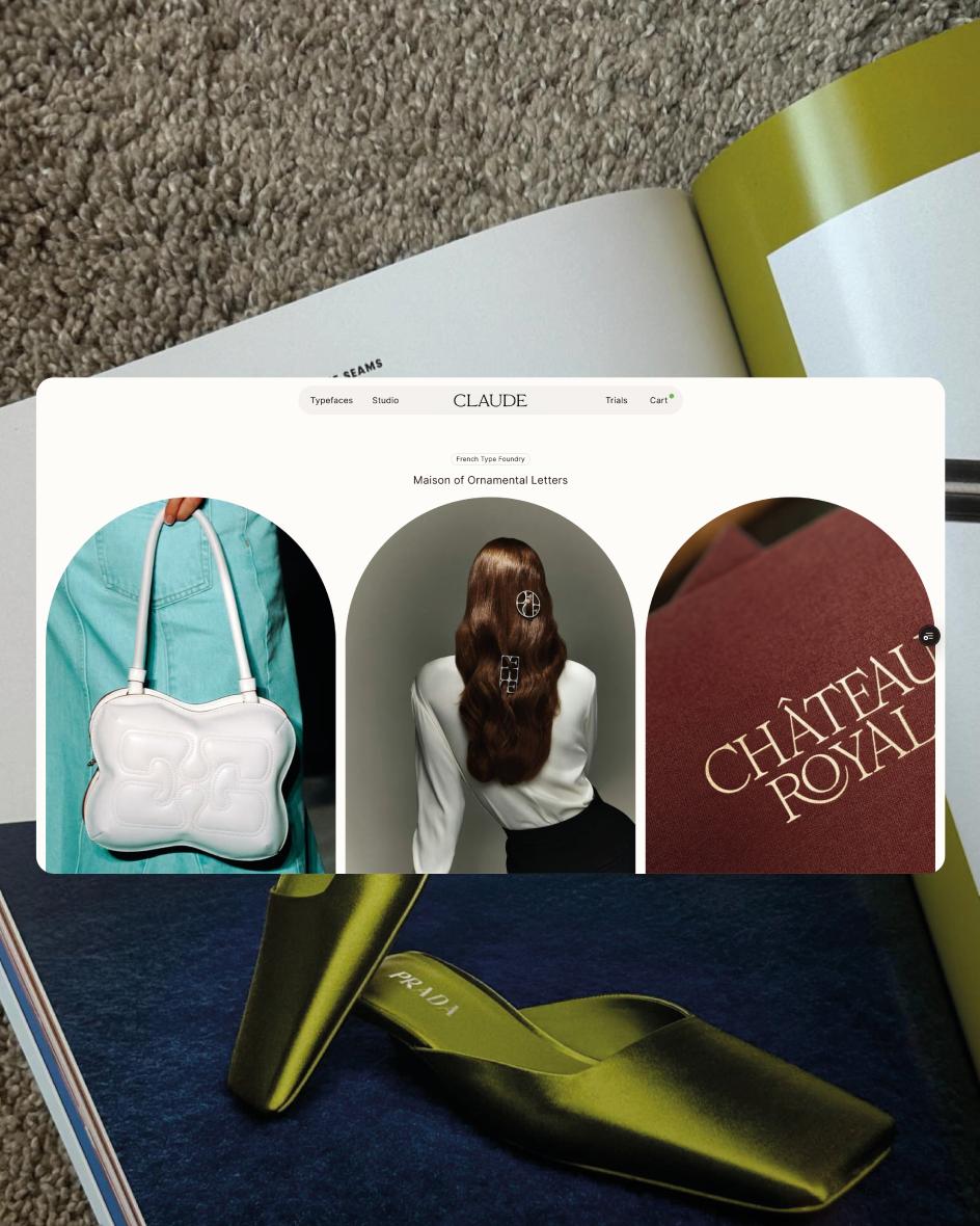 Margot has worked as an art director at Louis Vuitton in Paris and at Pentagram with Paula Scher, which gives her a particular vantage point on the relationship between type and the broader creative world. Claude Type is conceived explicitly as a couture atelier, not a traditional catalogue: "a place where each typeface is made slowly, with time and intention, the way a dress is cut before it is ever worn".