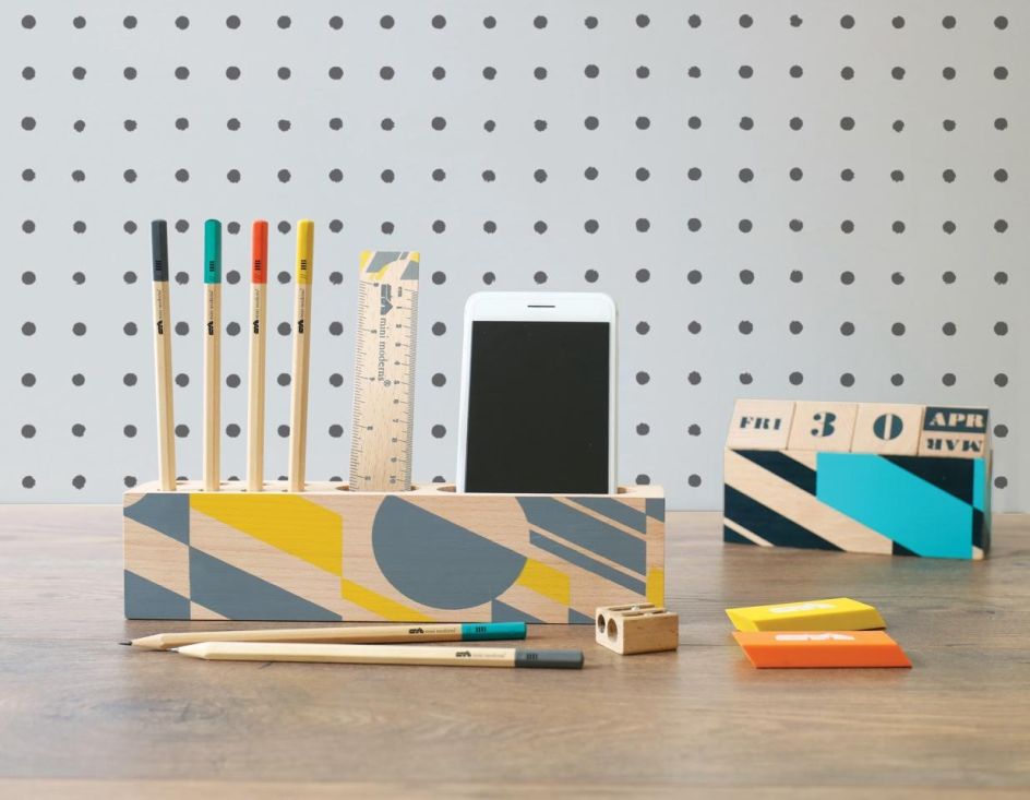 As you would expect, the home office collection features Mini Moderns signature colours, with products largely grouped in three colour blocks: Mustard, Tangerine Dream and their distinctive turquoise, known as Lido. The extensive launch range offers pocket money items alongside icon desk accessories, which is reflected in the price range – from £4.99 for a set of three erasers to a notebook & pen case at £27.99. Find out more at www.minimoderns.com.