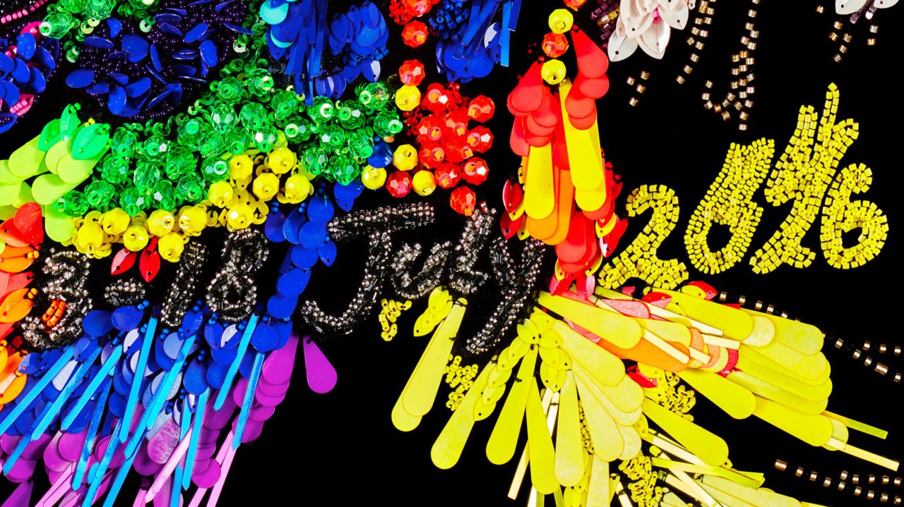 Kévin's creation is the first embroidered poster in the festival's history, a three-dimensional artwork composed of more than 60,000 upcycled beads, sequins, and materials meticulously hand-stitched onto velvet. Six artisans worked simultaneously to achieve what the designer describes as "organised chaos" – a technical feat that required the precision and collaborative energy of a haute couture atelier.