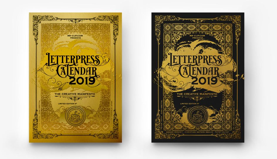 Mr Cup is set to release a beautiful and unique letterpress calendar for 2019. The graphic designer has created limited edition, hand numbered letterpress calendars for the past seven years, and the one for 2019 is set to be just as stunning, with two versions – one with black paper with gold hot foil, and a deluxe edition on gold paper, with gold foil and black foil printing.