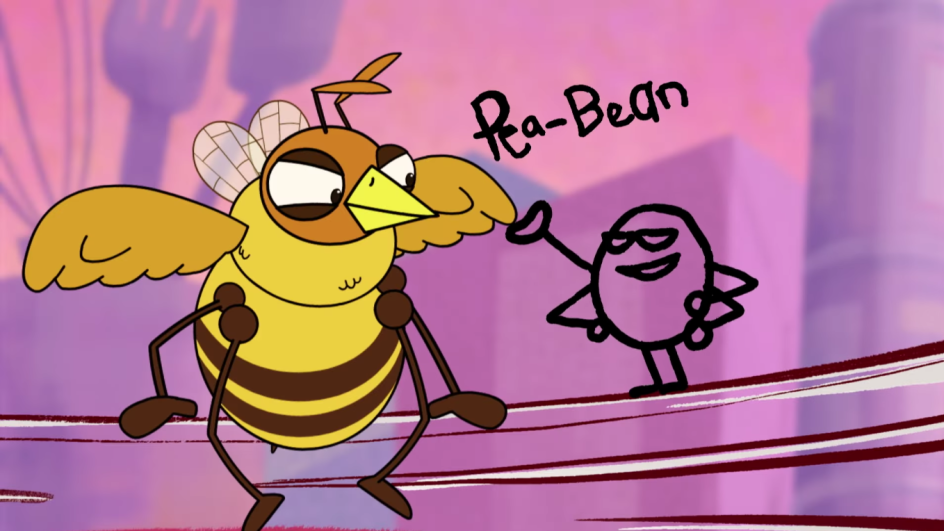 The series was also influenced by the Lloyd of the Flies voice cast, including Tom Rosenthal, Alex Lawther and Lauren Patel, who all appear in Adventures of ArachnoFly. "ArachnoFly is an exaggerated Lloyd, and Pea-Bean is just PB," says Matt, "But Bird-Bee is an evil cackling villain, the opposite of Abacus, so Bird-Bee became quite a sweet evil cackling villain."