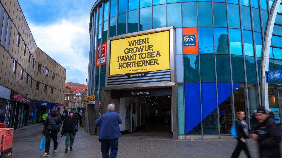 The identity extends into a billboard campaign with partner Open Media, appearing across Manchester, Liverpool and Newcastle. And rather than promoting speakers or ticket sales, the campaign focuses on something harder to pin down: the shared experience of leaving your hometown in search of opportunity and what that might mean for reframing your story.