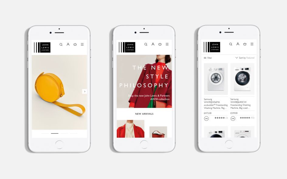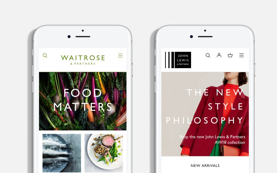 Distinctive colour palettes provide a striking singularity through the use of neutral colours, allowing product and content to take centre stage. Monochrome for John Lewis, and a rich green palette for Waitrose. The colour scheme is flexible and infinitely adaptable, particularly for Waitrose, which operates in the louder world of supermarket retail.
