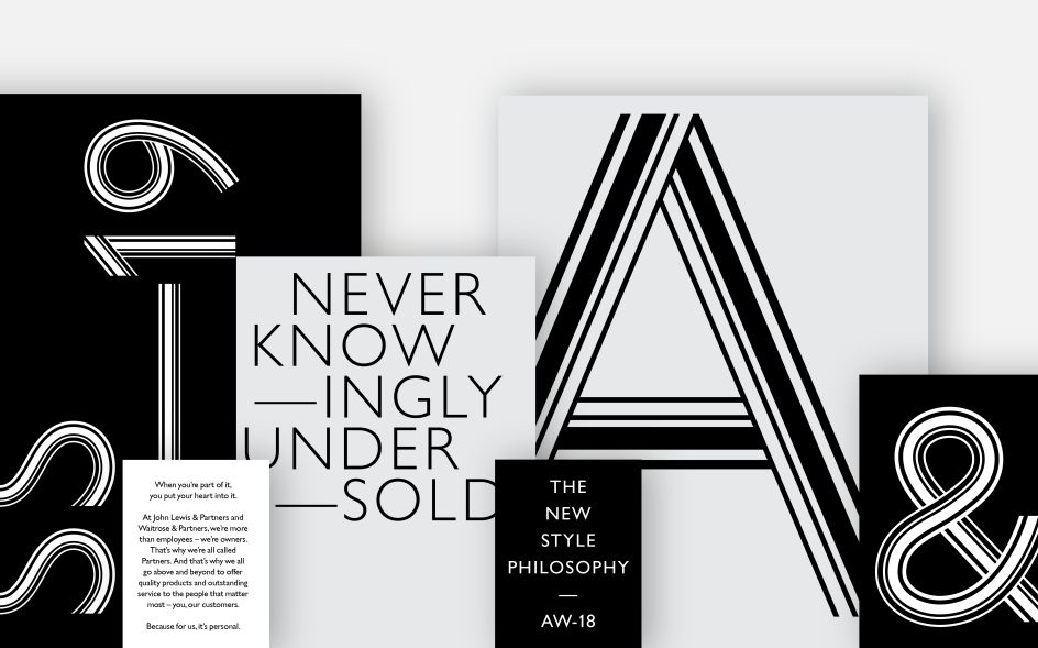 Applied across both the John Lewis Partnership parent brand and the trading brand identities of John Lewis and Waitrose, differing variants of the logo have been designed to be used depending on the requirements of the application; responding to a wide range of products, communications and customer experiences while maintaining recognition and building a cohesive customer experience.