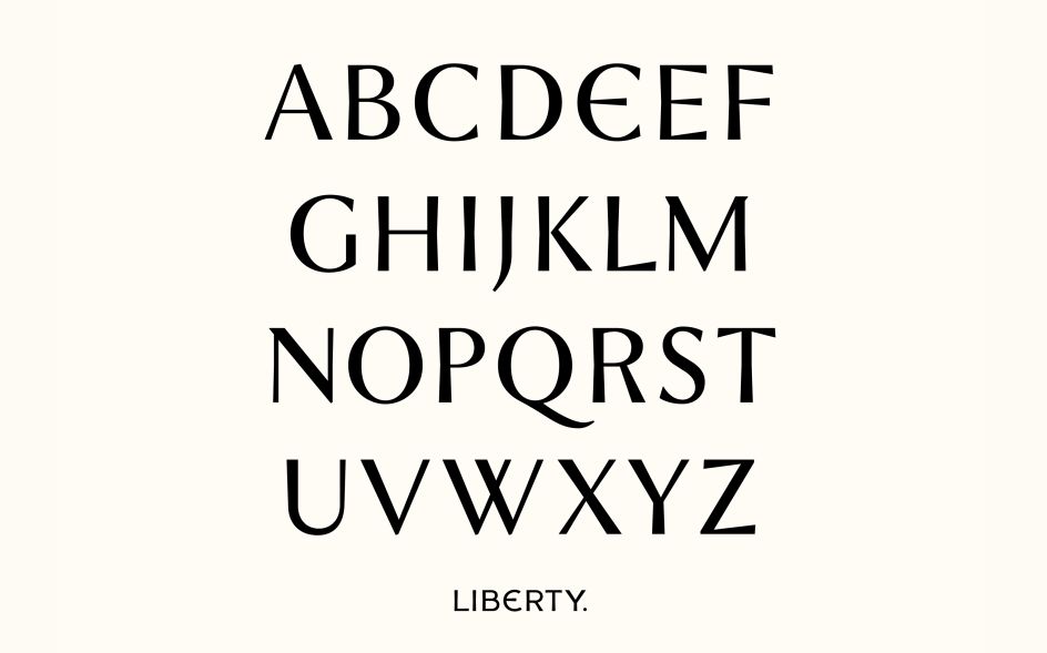 The new logotype was used as inspiration for a custom display typeface, Lasenby Sans, named after Liberty's founder and created in collaboration with Colophon type foundry. Among the distinguishing features of the "idiosyncratic and crafted" are tapered line endings, a low x-height and a distinctive curved 'Epsilon' style letter 'E'. Although idiosyncratic and crafted, it still feels effortlessly modern.