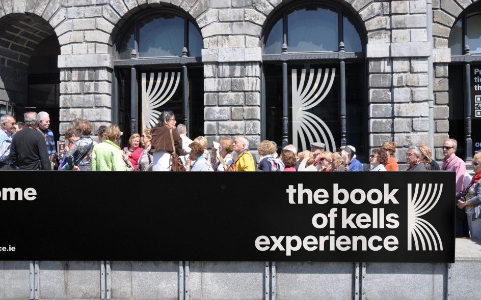 They're greeted by The Book of Kells Experience: an immersive digital journey set within a specially constructed pavilion on the grounds of the College, which allows visitors to first see The Book of Kells in the Old Library and experience the beauty of the Long Room. This is followed by the digital presentation that spans 1,200 years and follows the book on its journey from Iona in Scotland over the Irish Sea to Kells and on to contemporary Dublin.
