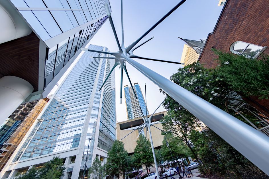 If you're walking down the streets of Charlotte in North Carolina, you might have spotted a new fixture by the Duke Energy headquarters. Towering over pedestrians like illuminated metal trees, the new sculptures commissioned by the energy holding company symbolise its contributions to the city and its electric cultural scene.