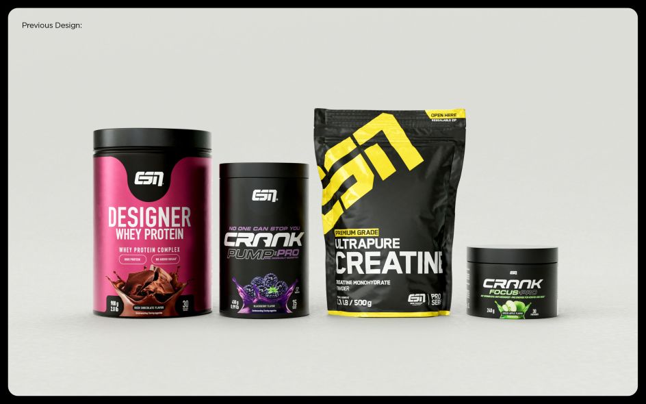 Standing for Elite Sports Nutrition, ESN is Germany's biggest sports nutrition brand, with an industry-leading array of products for performance-driven people and elite athletes. But just like any big-range brand, ESN has lost its way over time. Enter global branding strategists Robot Food, who have stripped back the fundamentals of ESN's existing identity and built something bigger and better in its place.