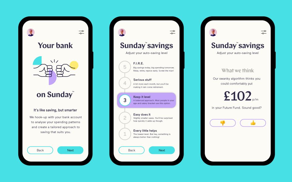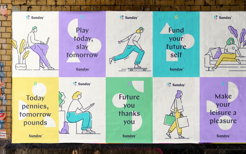 For pensions, Robot Food came up with 'Sunday', which takes inspiration from new-gen fintech to target those who need a pension most – young adults. "Consumers felt unable or felt a lack of impetus, to start a pension while they're young and felt overwhelmed and anxious at the thought of their financial future," Simon says. "Through a youthfully upbeat tone and visual style, Sunday encourages a proactive, positive approach to pensions. Oh, and it's not called a pension."