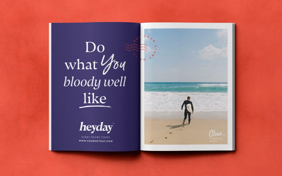 And for holidays for the over 50s, the Leeds agency saw a bigger opportunity beyond holidays and created 'Heyday'. Simon explains: "From our research, the real issue was the misrepresentation of over 50s by brands in general. Consumers we spoke to felt positive about their age and showed no signs of slowing down. Brands for over 50s were for 'oldies' and not how they saw themselves. Heyday chooses to actually acknowledge age and celebrate it through a tone of voice inspired directly by the audience and timeless creative direction."