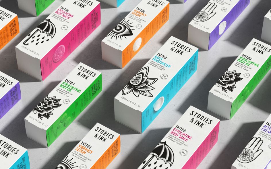Stories & Ink is a skincare brand dedicated to those with tattooed skin, developed by The Others Beauty Co. founder Stu Jolley and Robot Food founder Simon Forster. As the brand gains traction in the retail market, landing key retail listings in Target across the US with a big-name retailer soon to be announced, Robot Food stepped in to upgrade its packaging design.