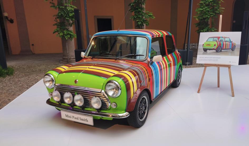 Outside, the courtyard displayed three cars from the partnership's history, including the 1999 40th Anniversary Mini with 86 stripes in 26 colours. That car is 27 years old. The collaboration is still generating genuinely interesting work. That says something.